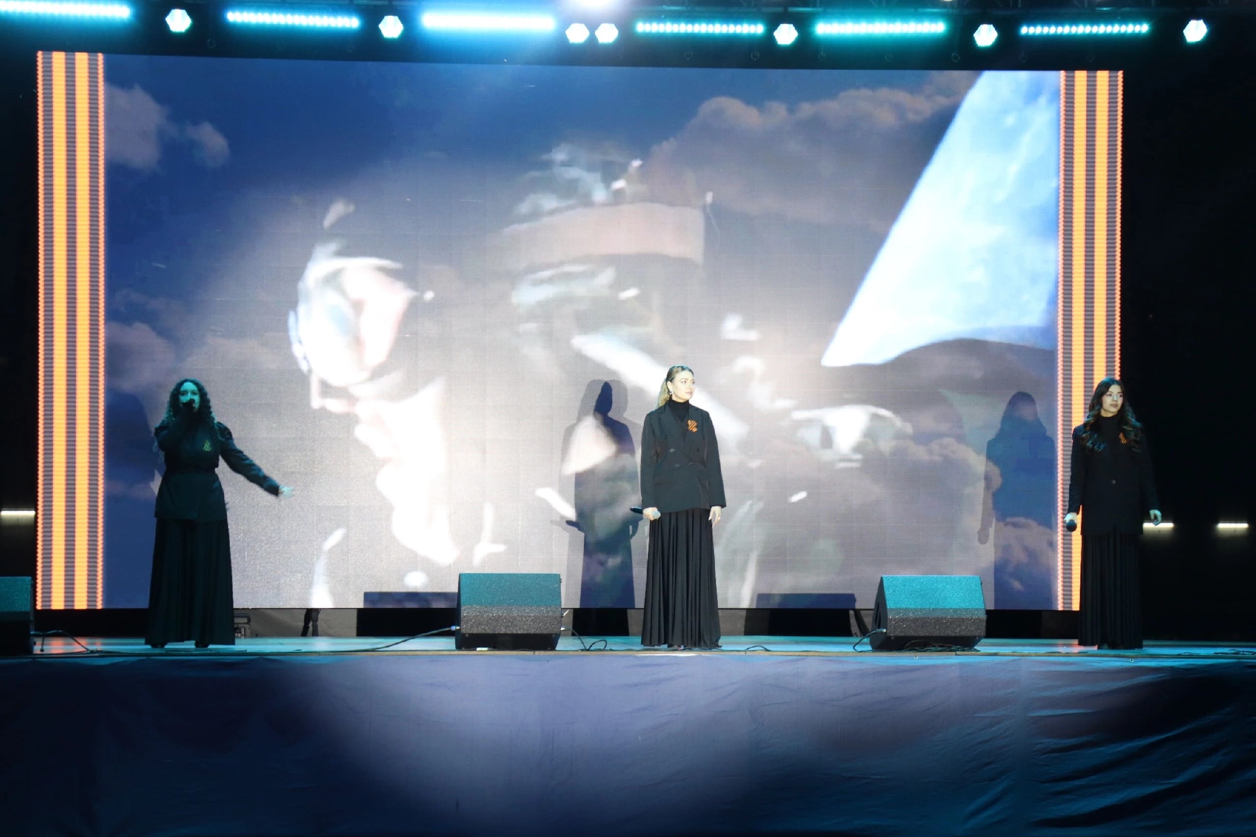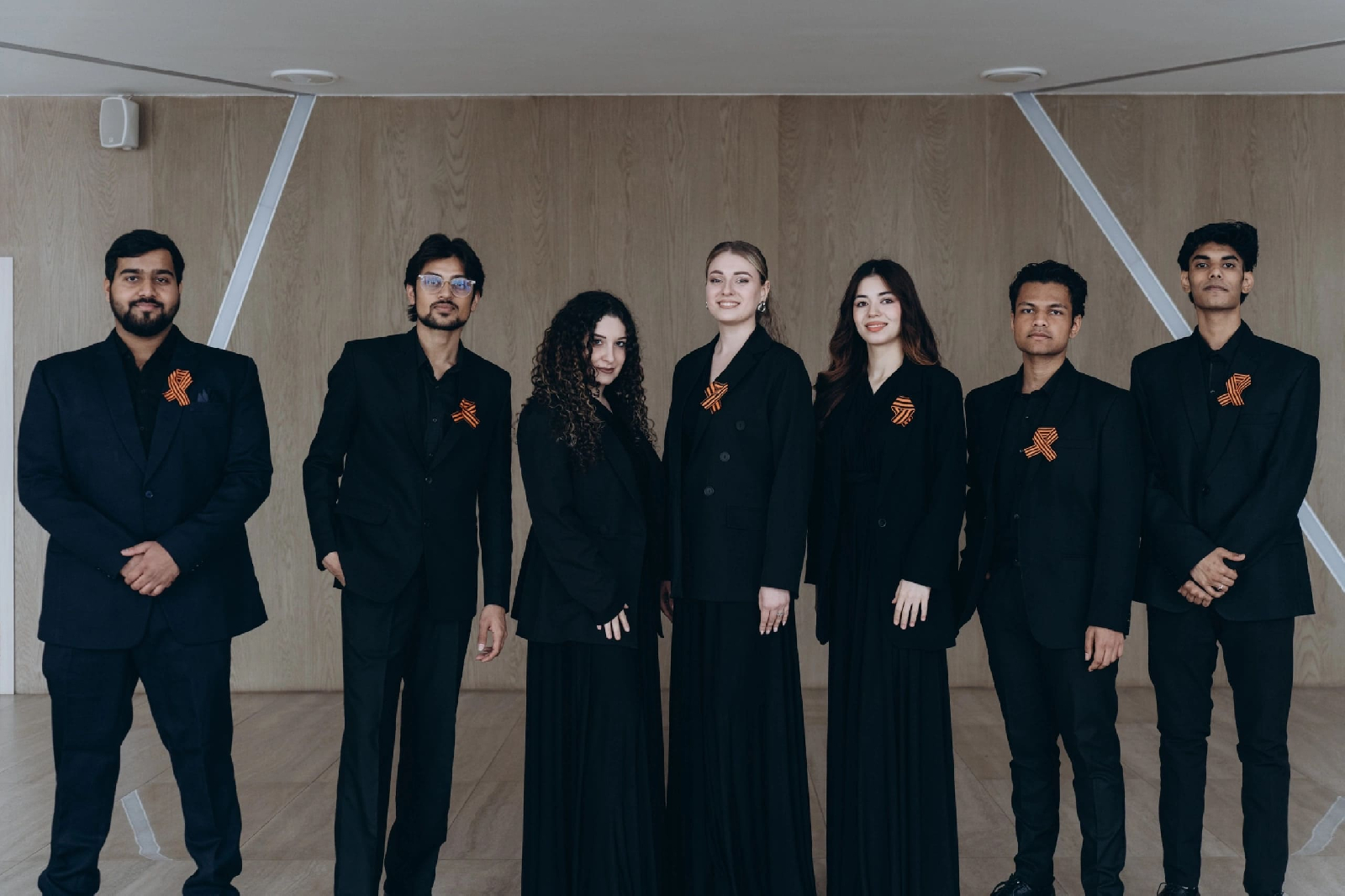 Die Vokalgruppe Harmonix - internationale Studenten aus Indien Shlok Kshirsagar, Ketul Patel, Sarthak Kulkarni und Abhiraj Shedge - führte die Komposition „Was wissen Sie über den Krieg“ auf. Die Solisten Saakanush Muradyan (Armenien), Malika Achylova (Turkmenistan) und die Leiterin der Gruppe Maria Melnikova trugen das sowjetische Lied „Ballade der Kriegspilotinnen“ vor.