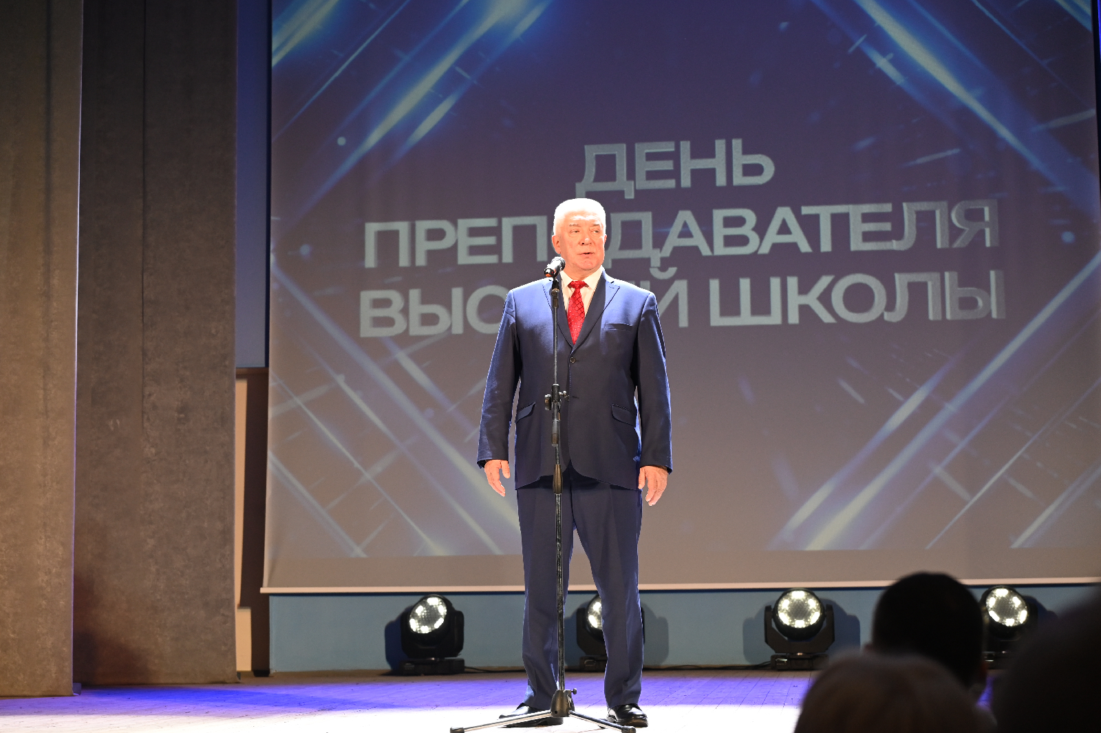 Fakultätsmitglieder, Mitarbeiter und Studierende versammelten sich im Kino- und Konzertsaal des Akademischen Gebäudes Nr. 5. Der Rektor Aleksandr Guliakov hielt eine Begrüßungsansprache an die Anwesenden. „Ein offizieller Feiertag ist eine wunderbare Gelegenheit, einander zu gratulieren, Mut zuzusprechen und zu danken. Er gibt uns zusätzliche Energie“, bemerkte der Rektor.